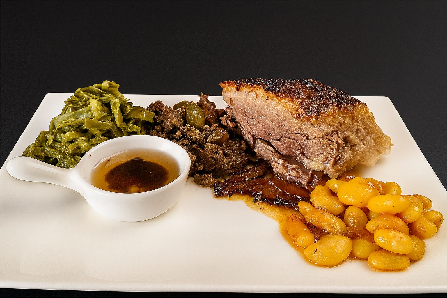 Une chair fondante et dorée, lentement rôtie, accompagnée d'un duo de haricots fondants et d'une farce savoureuse... Un plat de fête, authentique et réconfortant, qui sent bon les repas de famille et les traditions de fin d'année